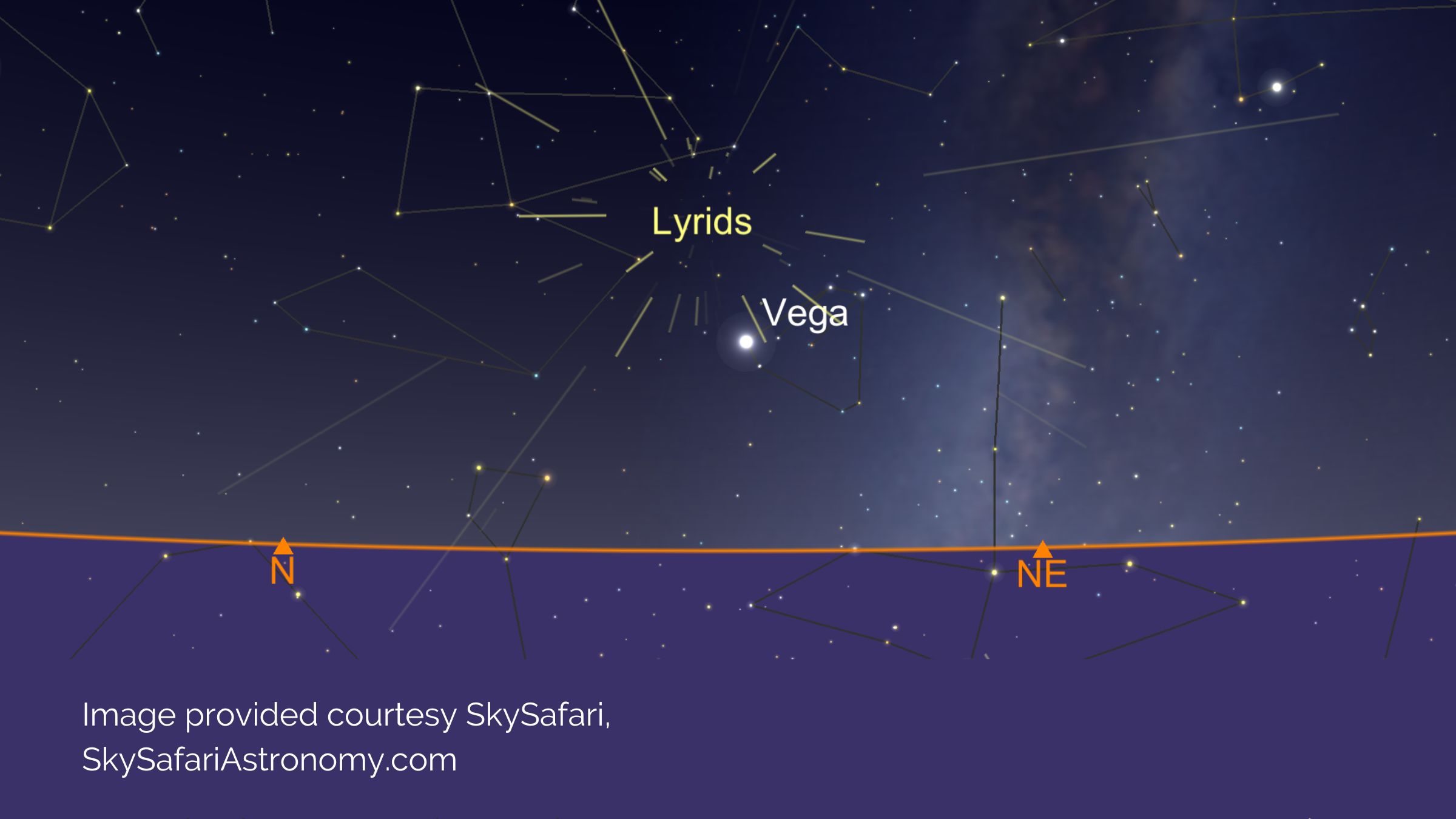 Meteor showers are named after the constellation where the “shooting stars” appear to be coming from. In the case of the Lyrids, the meteors come from the direction of the constellation of Lyra. If you have a handy smartphone app that helps you identify objects in the night sky, search for Lyra, and you’ll be looking in the right location.